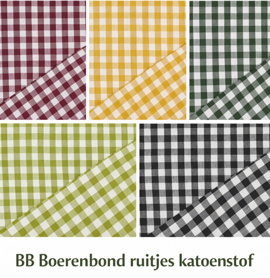 BB Ruitje Zwart Wit, BB Ruitje Aubergine, BB Ruitje Honing Geel, BB Ruitje Lime Groen, BB Ruitje Jagers Groen
