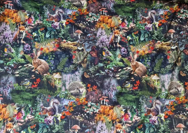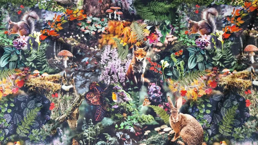 Stof met Bosdieren Deze digitale print stof toont een levendig boslandschap vol dieren en planten. Je ziet een nieuwsgierige vos, een schattig konijn, een egel, een wijze uil en kleurrijke vogels zoals roodborstjes en pimpelmezen. Ze zijn omringd door varens, bloemen, bessen en paddenstoelen — een sprookjesachtige compositie die kinderen én volwassenen aanspreekt. De print is haarscherp en gedrukt op een zachte, soepele digitaal geprinte katoenstof Toepassingen voor Stof met Bosdieren Tassen, en etuis Dekens, sierkussens en wanddecoratie Seizoensgebonden interieur (herfst/winter) Bekleding en creatieve DIY-projecten Deze digitale print stof brengt het bos tot leven! Het ontwerp toont een rijk gedetailleerd tafereel vol dieren zoals een nieuwsgierige vos, een schattig konijn, een wijze uil, een egel en kleurrijke vogels zoals roodborstjes en pimpelmezen. Ze zijn omringd door een weelderige mix van varens, bloemen, bessen en paddenstoelen, waardoor de stof een sprookjesachtige uitstraling krijgt. De print is haarscherp en kleurrijk, gedrukt op een zachte, soepele stof die geschikt is voor allerlei creatieve toepassingen. Denk aan kinderkleding, herfstige jurken, knuffels, dekens, tassen, of zelfs wanddecoratie. Door de levendige kleuren en het speelse ontwerp is deze stof bijzonder geliefd bij kinderen én volwassenen die van natuur en dieren houden. Of je nu een warme hoodie maakt, een speelse rok, of een decoratief kussen: deze stof zorgt voor een uniek en vrolijk resultaat. Bekijk hier nog meer leuke digitaal geprinte stoffen https://makomastoffen.nl/product-category/deco-interieur-stof//?filters=product_cat[1519] Volg Makomastoffen op Facebook. https://www.facebook.com/Makomastoffen