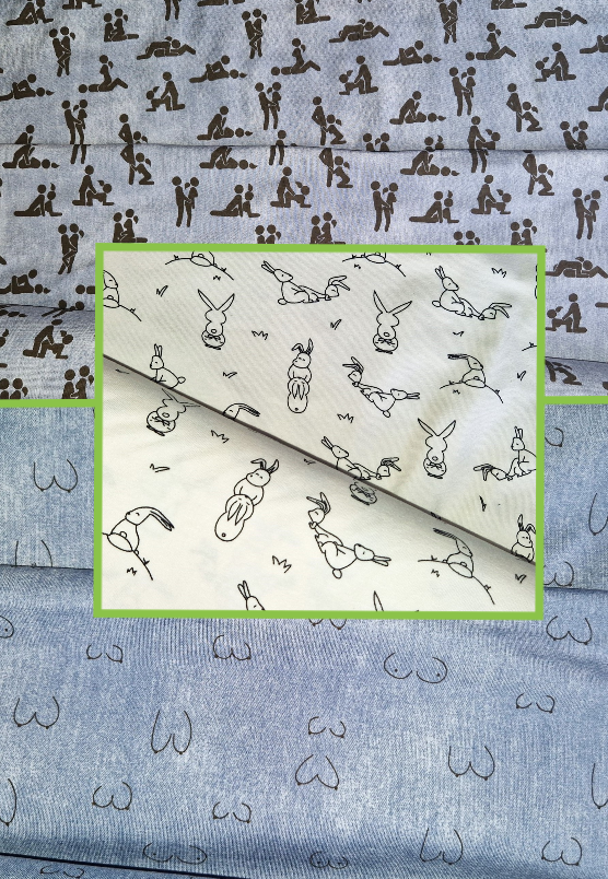 Blauw kamasutra, Denim Blauw Boobies, Konijntjes Wit zwart